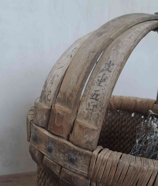 Already found & claimedTall Vintage Chinese Round Basket with Handle and Script