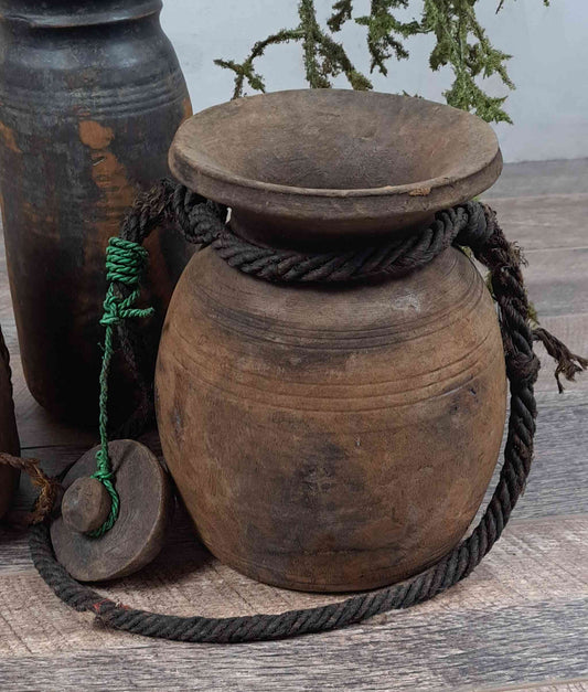 Already found & claimedAntique Wooden Himachal Pot with rope, black