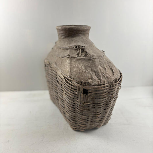 Antique Chinese Wicker & Clay Oil Bottle Loam Basket - Shanxi, China