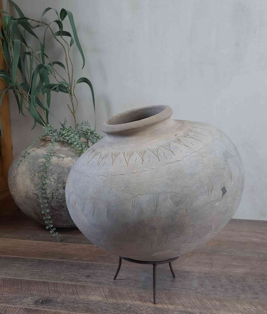 Bereits vergebenAntiker afrikanischer Tontopf auf Metallständer