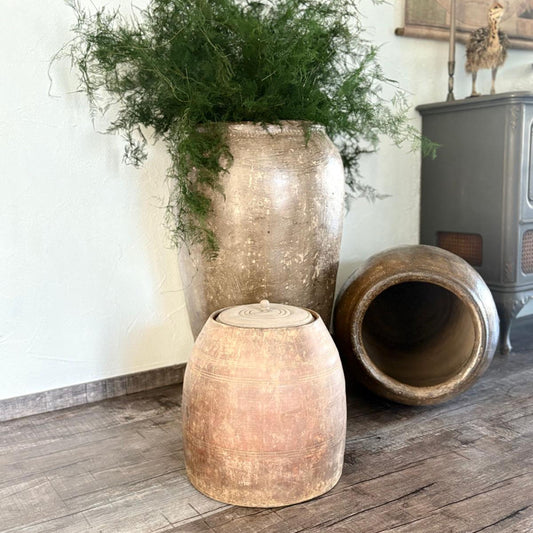 Bereits vergebenAntiker Himachal-Topf aus Holz - Chhusang, Nepal