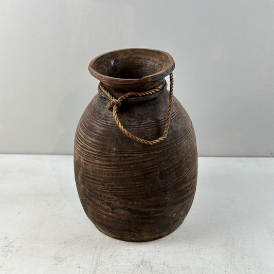 Bereits vergebenAntiker Himachal-Topf aus Holz – Seildetail