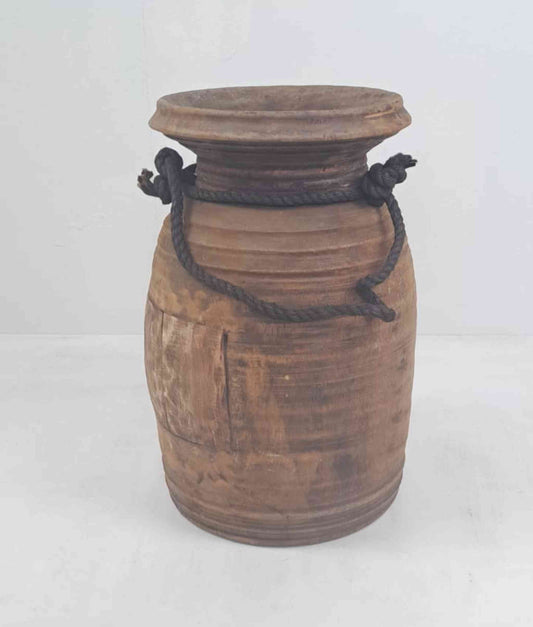 Bereits vergebenRiesiger XXL antiker Himachal-Topf aus Holz mit Seil