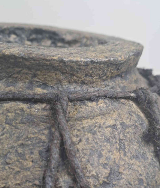Bereits vergebenVintage Pappmaché Vase mit Seildetail aus Indien