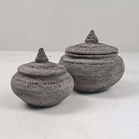 Bereits vergebenSatz von 2 Vasen mit Deckel - Nepal