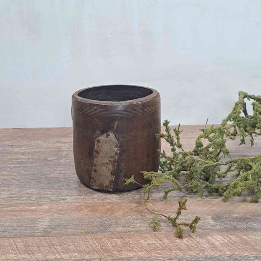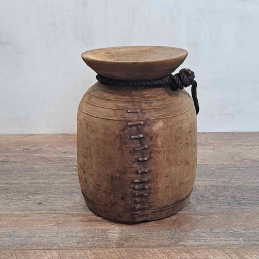 Bereits vergebenRiesiger XXL antiker Himachal-Topf aus Holz mit Seil