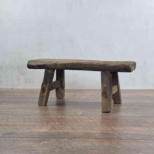 Antiker chinesischer Melkhocker, rustikaler Hocker, kleiner Dekorhocker