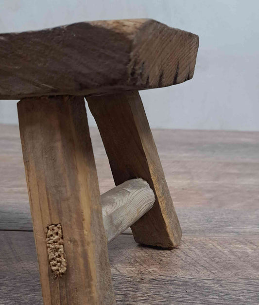 Bereits vergebenAntiker chinesischer Melkhocker, rustikaler Hocker, Dekorhocker