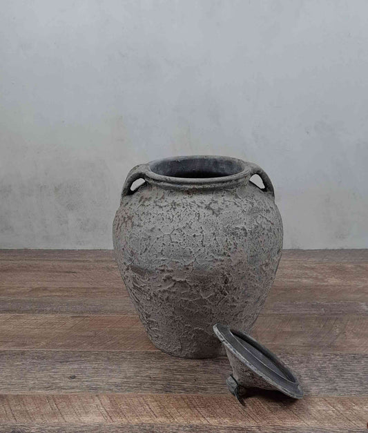 Bereits vergebenTon Vase mit Deckel aus Nepal - Groß