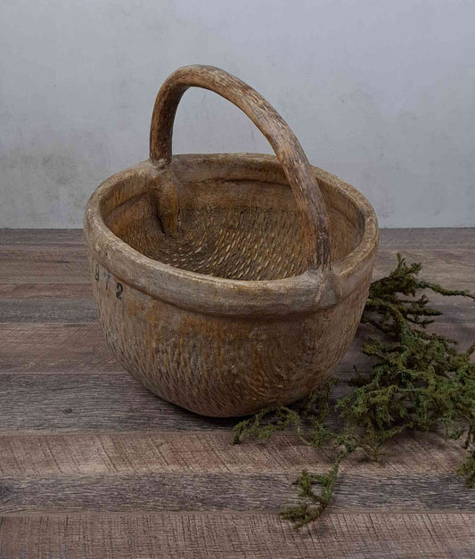 Bereits vergebenVintage chinesische Reiskorb aus Holz mit Griff