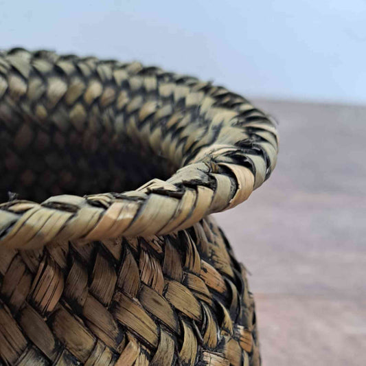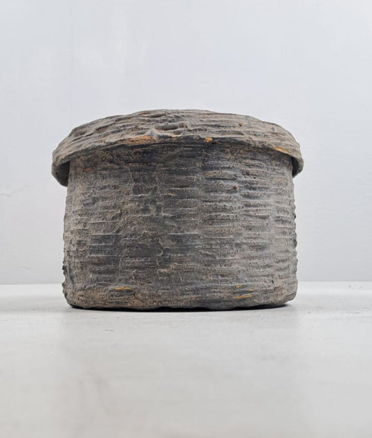 Bhutanischer Korb mit Deckel aus Weide und Ton - L