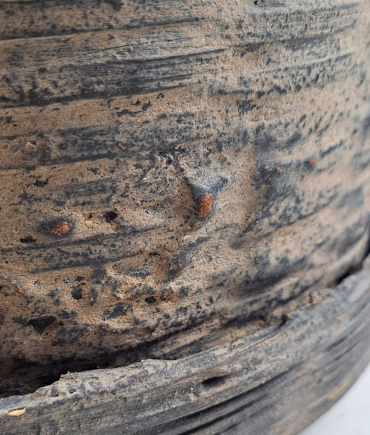 Bhutanischer Korb mit Deckel aus Weide und Ton - M