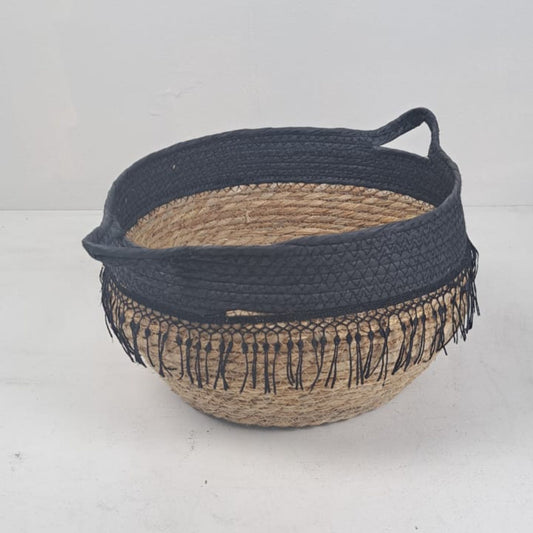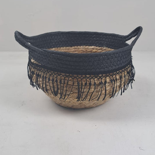 Afrikanischer Tribal-Korb mit Quasten, handgefertigt, 24 cm
