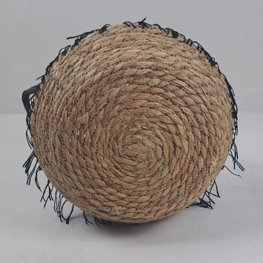 Afrikanischer, handgefertigter Tribal-Korb mit Quasten, 27 cm