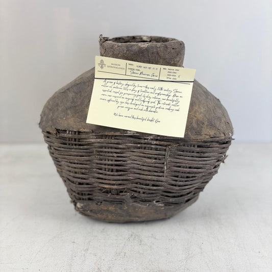 Antike chinesische Korb- und Tonöl-Lehmflasche - Shanxi, China