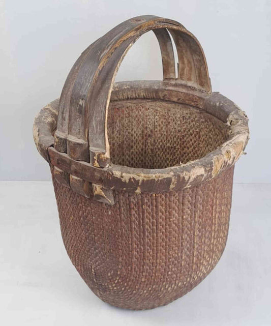 Vintage Chinesische Reiskorbbox aus Holz mit Griff - Provinz Guangdong, China